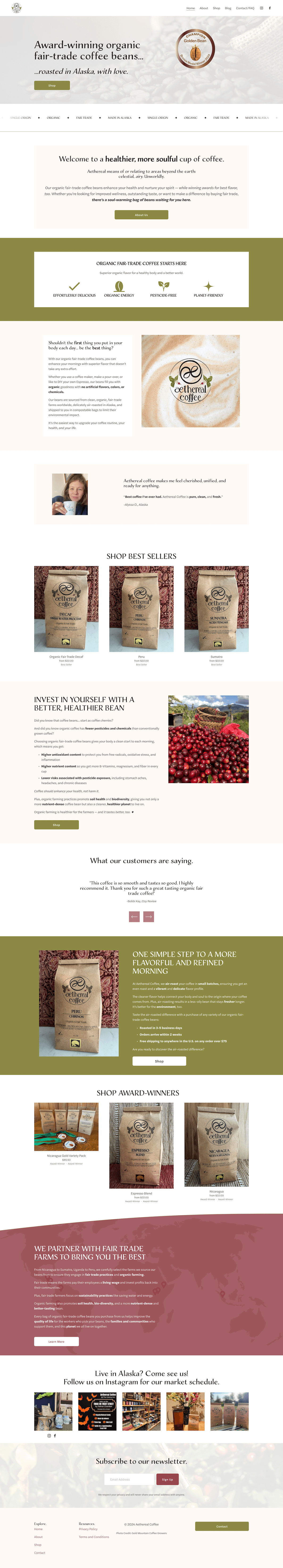 Aethereal Coffee is a coffee bean roaster based in Palmer, Alaska. They needed their first-ever website to expand sales to new markets, explain the coffee production process, and highlight their brand values.
