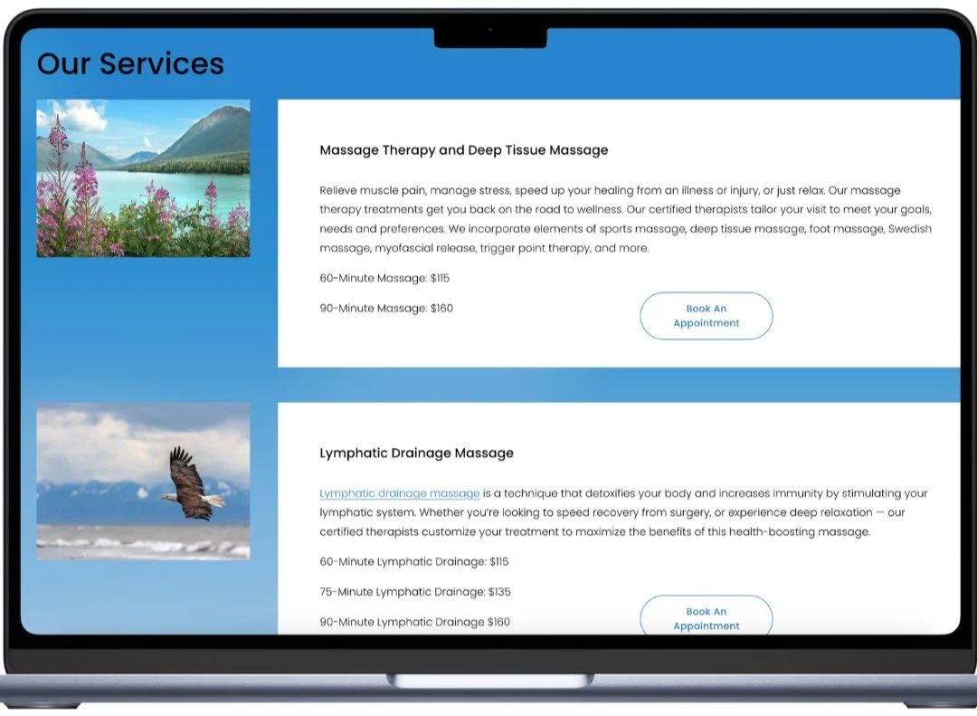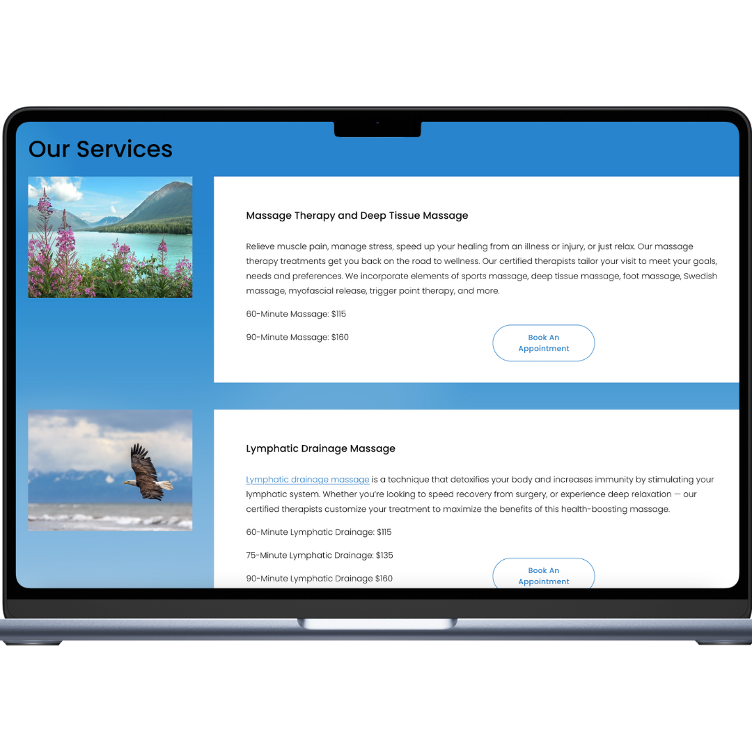 Anchorage Massage Therapies (AMT) is a therapeutic and wellness massage studio in Anchorage, Alaska. They needed a brand new website, complete with a full-funnel client acquisition strategy so that more people could find their services and get the help they need.