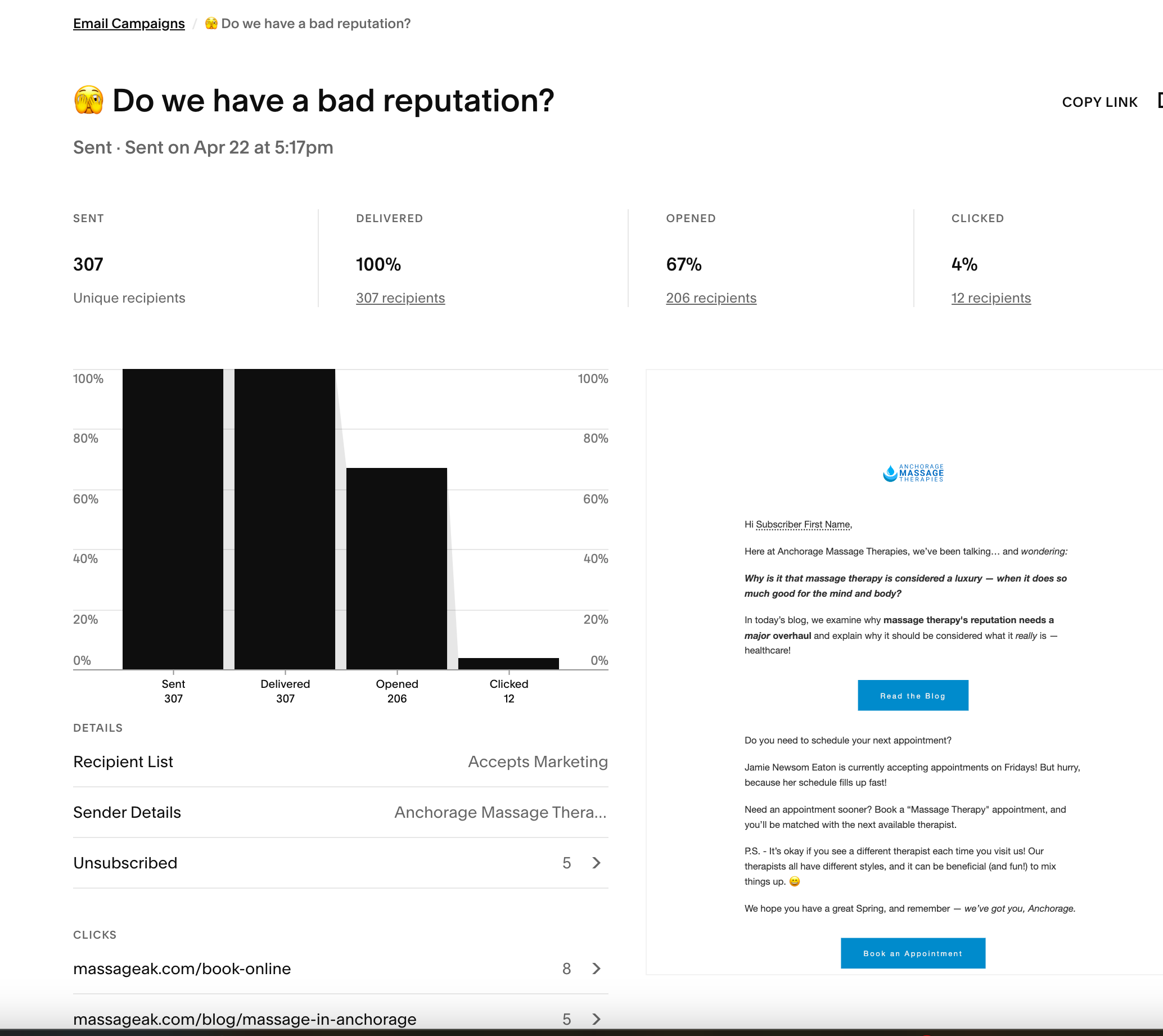 Weekly emails let clients know new blogs were available to read. As you can see, the open rates are higher than usual.