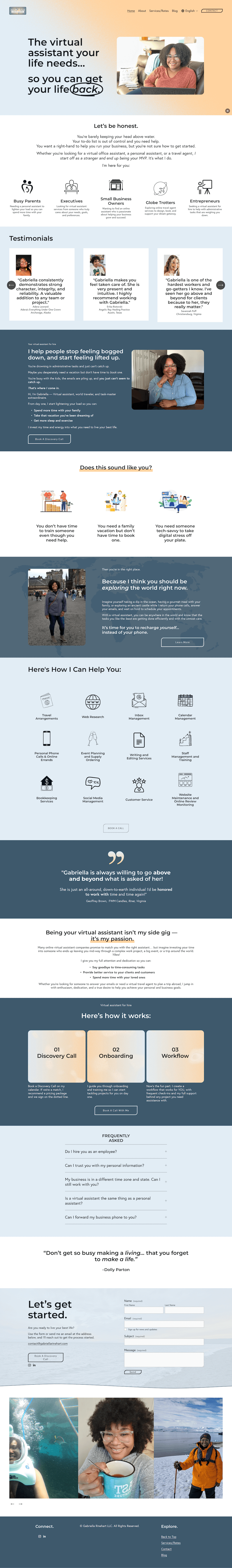 Gabriella Rinehart Virtual Assistant is a virtual assistant company based in Anchorage, Alaska. Gabriella wanted a website to attract new clients, explain her services, and allow leads to book a discovery call easily online.